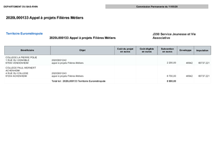 "Filières métiers" dans les collèges : proposition de partenariats pluriannuels et attribution de subventions dans le cadre de l'appel à projets