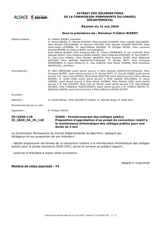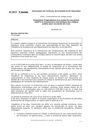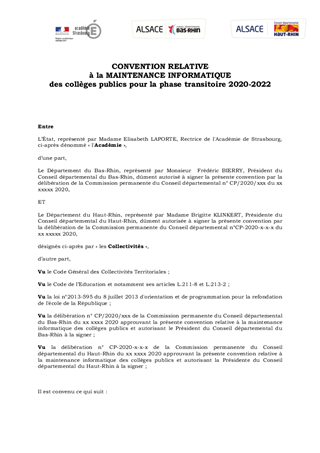 Le présent rapport propose à la Commission Permanente d’approuver et d’autoriser la signature d’une convention relative aux responsabilités et aux rôles respectifs de l’Académie de Strasbourg et des Départements du Haut-Rhin et du Bas-Rhin. Elle concerne l’assistance et la maintenance des infrastructures, des matériels et des solutions logicielles (métier, pédagogique) nécessaires au bon fonctionnement de l’écosystème numérique dans les collèges publics du second degré, pendant une phase transitoire d’une durée de 2 ans.