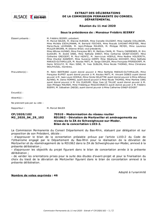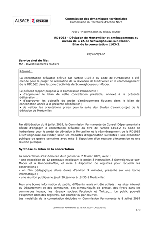 RD1062 - Déviation de Mertzwiller et aménagements au niveau de la ZA de Schweighouse-sur-Moder. Bilan de la concertation L103-2.