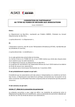 Le renforcement de la démocratie d’implication souhaité par les élus départementaux s’est notamment concrétisé par le lancement, en 2016, des Assises de l’Engagement qui ont eu pour objectifs de : - définir de nouveaux modes de partenariat, - encourager et soutenir l’engagement, - repositionner l’accompagnement des associations face à la baisse des financements publics, - prendre en compte collectivement les nouveaux enjeux sociétaux. Ces Assises ont également débouché sur la création du Conseil Départemental de l’Engagement et de la Vie Associative (CODEVA), instance d’animation, de partage et de proposition, impliquant l’ensemble des acteurs du tissu associatif. Parmi les propositions émanant du CODEVA figure la création d’un fonds de secours à destination des associations qui rencontrent des difficultés financières conjoncturelles et passagères, mettant en péril leur activité. Il vient en complément du travail d’accompagnement et de suivi des associations réalisé par les Conseillers Territoriaux à la Vie Associative, présents sur chacun des quatre territoires d’actions du Département. Dans ce cadre, le présent rapport propose d’attribuer une subvention de fonctionnement d'un montant de 10 000 € à l’association Lupovino.