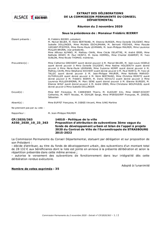 Proposition d'attribution de subventions 3ème vague du fonds de développement urbain et bilan de l'appel à projets 2020 du Contrat de Ville de l'Eurométropole de STRASBOURG 2015-2022