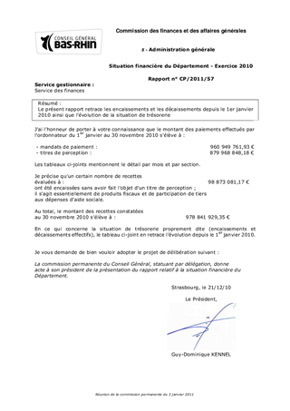 Le présent rapport retrace les encaissements et les décaissements depuis le 1er janvier 2010 ainsi que lévolution de la situation de trésorerie