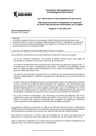 Le présent rapport concerne les demandes d'aide financière présentées par divers particuliers dans le cadre du dispositif départemental d'aide à l'adaptation du logement en faveur des personnes handicapées et/ou âgées mis en place lors de la réunion du Conseil Général du 12 décembre 1995. A ce titre, 22 dossiers sont présentés dans l'annexe au rapport.