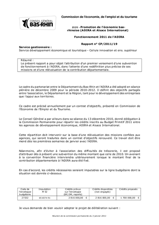 Le présent rapport a pour objet lattribution dun premier versement dune subvention de fonctionnement à lADIRA, dans lattente dune redéfinition plus précise de ses missions et dune réévaluation de la contribution départementale.