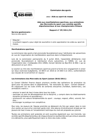 Aide aux manifestations sportives, aux animations des Mercredis du sport, aux comités sportifs départementaux et aux championnats d'Alsace