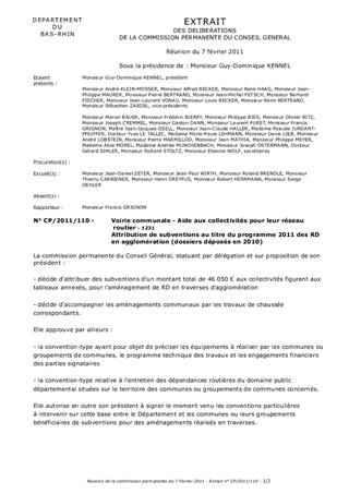 Attribution de subventions au titre du programme 2011 des RD en agglomération (dossiers déposés en 2010)