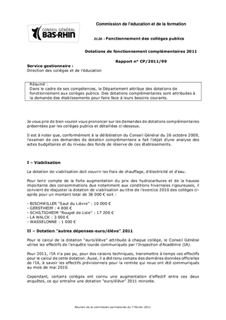 Dans le cadre de ses compétences, le Département attribue des dotations de fonctionnement aux collèges publics. Des dotations complémentaires sont attribuées à la demande des établissements pour faire face à leurs besoins courants.