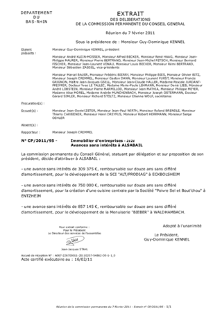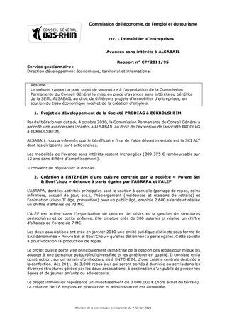 Le présent rapport a pour objet de soumettre à l'approbation de la Commission Permanente du Conseil Général la mise en place d'avances sans intérêts au bénéfice de la SEML ALSABAIL au droit de différents projets d'immobilier d'entreprises, en soutien du tissu économique local et de la création d'emplois.