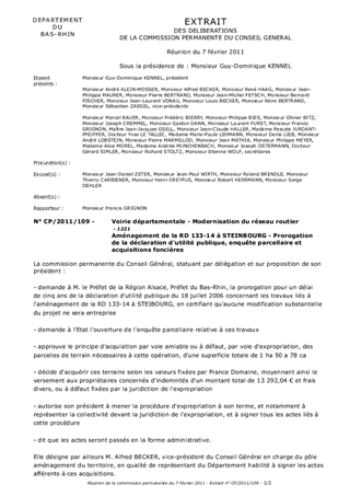 Aménagement de la RD 133-14 à STEINBOURG - Prorogation de la déclaration d'utilité publique, enquête parcellaire et acquisitions foncières