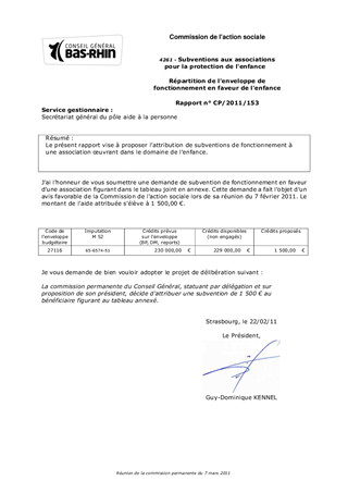 Le présent rapport vise à proposer lattribution de subventions de fonctionnement à une association uvrant dans le domaine de lenfance.