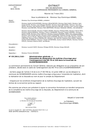 Convention de désignation de maîtrise douvrage pour laménagement des RD 79 et 220 dans la traversée de KLEINFRANKENHEIM