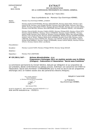 Programme d'échanges 2011 en matière sociale avec la Silésie (Pologne) - Subvention à l'Association ''Social sans frontières''