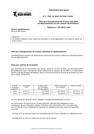 Le présent rapport a pour objet de soumettre à votre approbation les aides au sport de haut niveau.