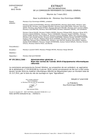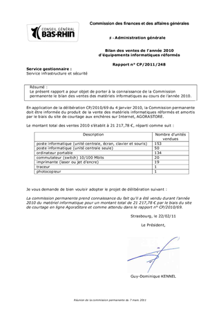 Le présent rapport a pour objet de porter à la connaissance de la Commission permanente le bilan des ventes des matériels informatiques au cours de lannée 2010.