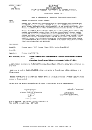 Chambre de métiers d'Alsace - Contrat d'objectifs 2011
