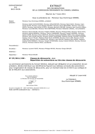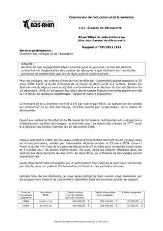 Répartition de subventions au titre des classes de découverte