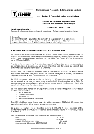 Le présent rapport a pour objet de soumettre à l'approbation de la Commission Permamente du Conseil général une participation financière du département à différentes actions dans le domaine de l'animation économique.