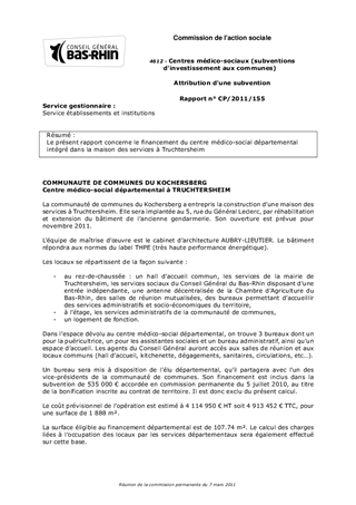 Le présent rapport concerne le financement du centre médico-social départemental intégré dans la maison des services à Truchtersheim