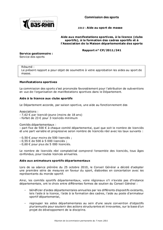 Le présent rapport a pour objet de soumettre à votre approbation les aides au sport de masse.