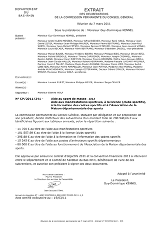 Aide aux manifestations sportives, à la licence (clubs sportifs), à la formation des cadres sportifs et à l'Association de la Maison départementale des sports