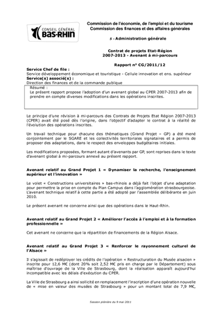 Le présent rapport propose ladoption dun avenant global au CPER 2007-2013 afin de prendre en compte diverses modifications dans les opérations inscrites.
