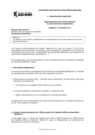 Ce rapport a pour objet la désignation de représentants du Conseil Général au sein de divers organismes.