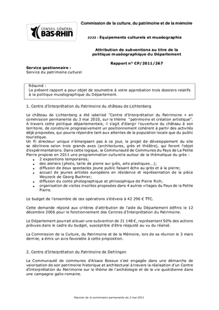 Le présent rapport a pour objet de soumettre à votre approbation trois dossiers relatifs à la politique muséographique du Département.