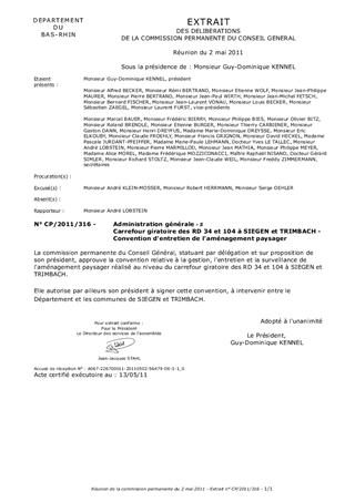Carrefour giratoire des RD 34 et 104 à SIEGEN et TRIMBACH - Convention d'entretien de l'aménagement paysager