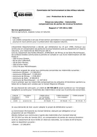 Réserves naturelles - Indemnités compensatrices de pertes de revenus forestiers