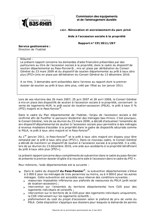 Le présent rapport concerne les demandes daide financière présentées par des particuliers au titre de laccession sociale à la propriété, dans le cadre du dispositif de soutien départemental au Pass-Foncier® , mis en place par délibération du Conseil Général du 23 mars 2009 et du dispositif de soutien départemental au prêt à taux zéro plus (PTZ+)mis en place par délibération du Conseil Général du 13 décembre 2010. A ce titre, 3 demandes sont présentées dans lannexe au rapport dont le premier dossier de soutien au prêt à taux zéro plus, créé par l'Etat au 1er janver 2011.
