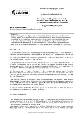 Convention de désignation de maîtrise douvrage pour laménagement de la RD 230 dans la traversée de FURCHHAUSEN