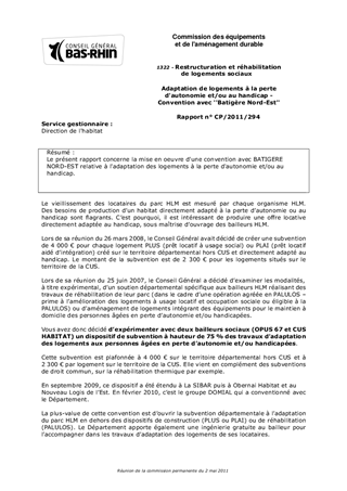Le présent rapport concerne la mise en oeuvre d'une convention avec BATIGERE NORD-EST relative à l'adaptation des logements à la perte d'autonomie et/ou au handicap.