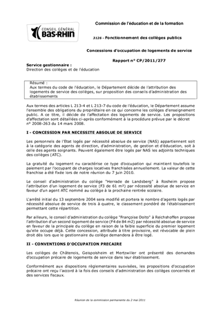 Aux termes du code de léducation, le Département décide de lattribution des logements de service des collèges, sur proposition des conseils dadministration des établissements