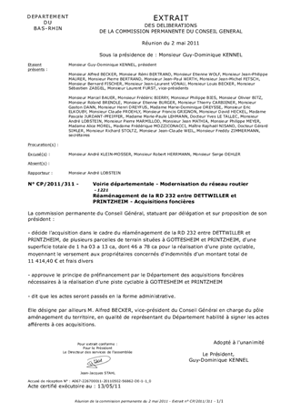 Réaménagement de la RD 232 entre DETTWILLER et PRINTZHEIM - Acquisitions foncières