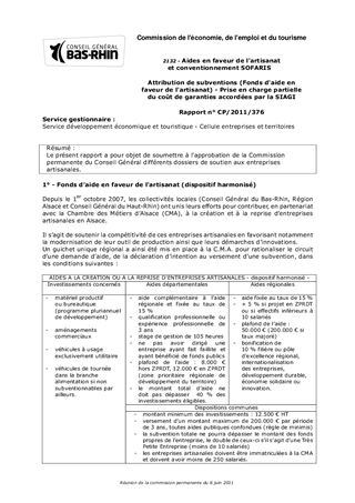 Le présent rapport a pour objet de soumettre à l'approbation de la Commission permanente du Conseil Général différents dossiers de soutien aux entreprises artisanales.