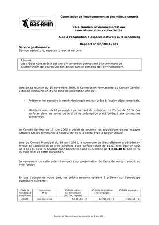 Aide à l'acquisition d'espaces naturels au Bischenberg