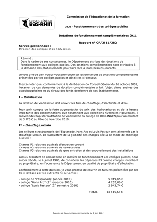 Dans le cadre de ses compétences, le Département attribue des dotations de fonctionnement aux collèges publics. Des dotations complémentaires sont attribuées à la demande des établissements pour faire face à leurs besoins courants.