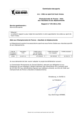 Le présent rapport a pour objet de soumettre à votre approbation les aides au sport de haut niveau.