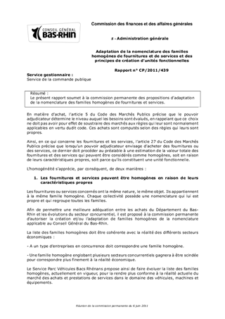 Le présent rapport soumet à la commission permanente des propositions d'adaptation de la nomenclature des familles homogènes de fournitures et services.