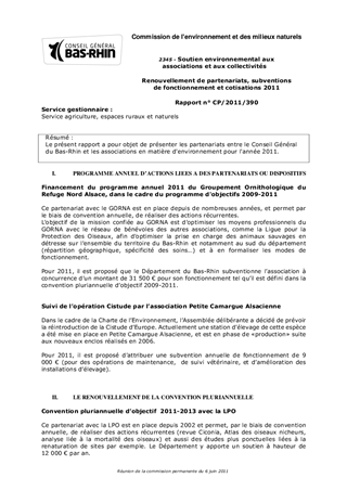 Le présent rapport a pour objet de présenter les partenariats entre le Conseil Général du Bas-Rhin et les associations en matière d'environnement pour l'année 2011.