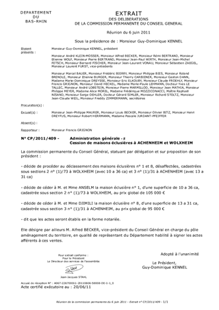 Cession de maisons éclusières à ACHENHEIM et WOLXHEIM