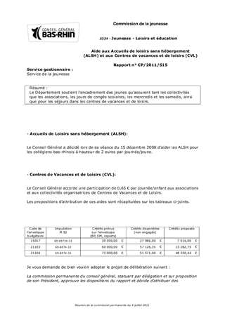 Le Département soutient lencadrement des jeunes quassurent tant les collectivités que les associations, les jours de congés scolaires, les mercredis et les samedis, ainsi que pour les séjours dans les centres de vacances et de loisirs.