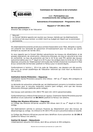 Le Conseil Général apporte son soutien aux travaux réalisés par les établissements scolaires privés sous contrat. Le crédit inscrit au budget est réparti par la commission permanente.