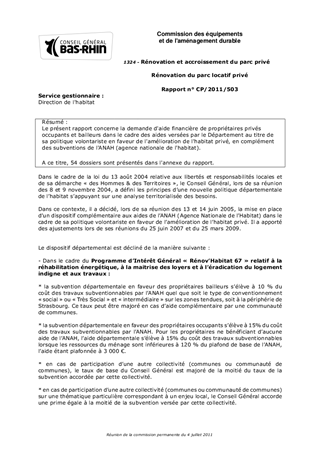 Le présent rapport concerne la demande d'aide financière de propriétaires privés occupants et bailleurs dans le cadre des aides versées par le Département au titre de sa politique volontariste en faveur de l'amélioration de l'habitat privé, en complément des subventions de l'ANAH (agence nationale de l'habitat). A ce titre, 54 dossiers sont présentés dans l'annexe du rapport.