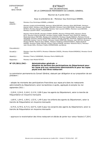 Adoption du barème des participations du Département pour les repas pris aux restaurants administratifs et pour les repas payés avec des titres restaurant