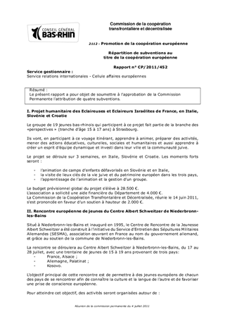 Le présent rapport a pour objet de soumettre à lapprobation de la Commission Permanente l'attribution de quatre subventions.