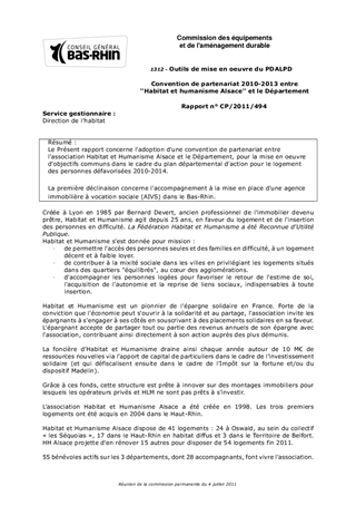 Convention de partenariat 2010-2013 entre ''Habitat et humanisme Alsace'' et le Département