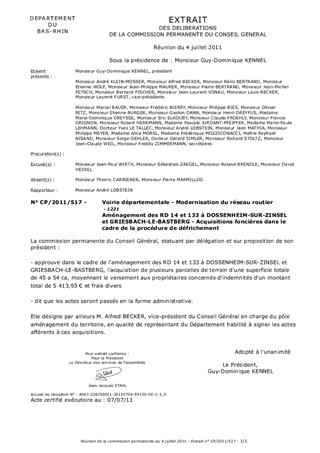 Aménagement des RD 14 et 133 à DOSSENHEIM-SUR-ZINSEL et GRIESBACH-LE-BASTBERG - Acquisitions foncières dans le cadre de la procédure de défrichement