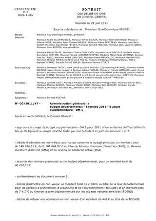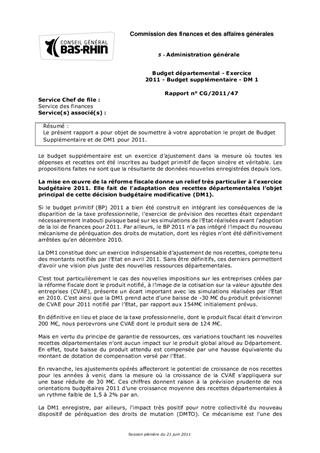 Le présent rapport a pour objet de soumettre à votre approbation le projet de Budget Supplémentaire et de DM1 pour 2011.