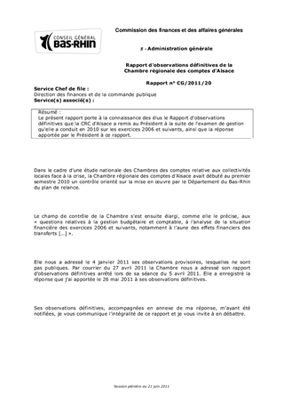 Rapport d'observations définitives de la Chambre régionale des comptes d'Alsace